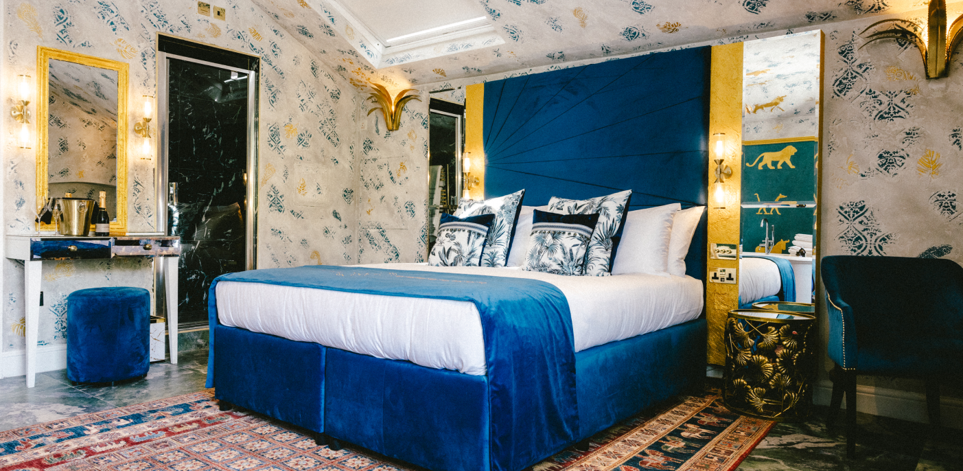Enter the Babylon Room at Baloci Boutique Hotel and step back in time to the ancient city renowned for its opulence and grandeur. Inspired by the Ishtar Gate, the room is a bold blend of deep blues and golds, with decor that mirrors the majestic Babylonian architecture. Luxurious textures and detailed motifs bring the richness of Mesopotamian culture to life, offering a stay that’s both historical and luxurious.